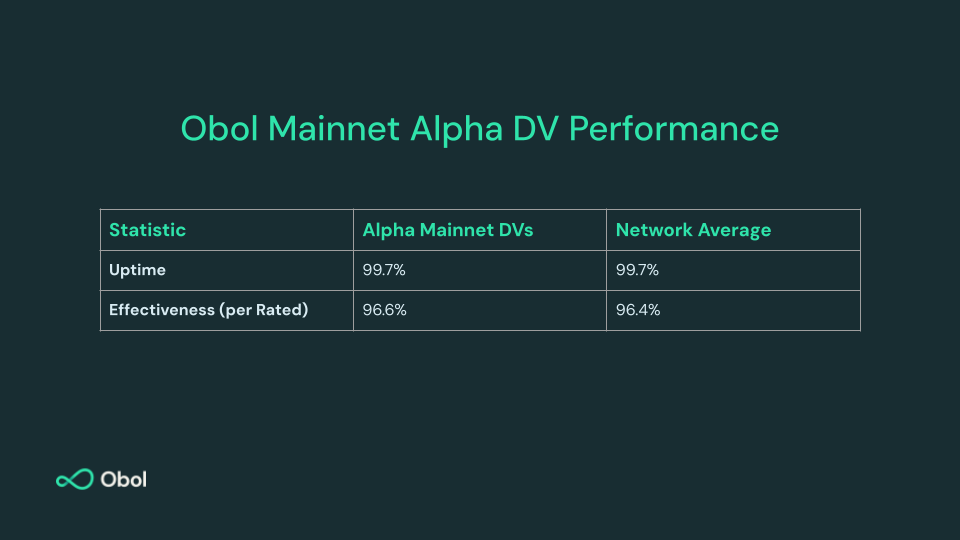 It isn’t enough to prove that DVs can be deployed on Mainnet. We take pride in ensuring that Mainnet DVs can be run with high uptime and effectiveness. Over the past 100 days, our Mainnet distributed validators have achieved performance metrics within ~1% of the network average. We will share a more detailed performance report, including learnings, in the near future.