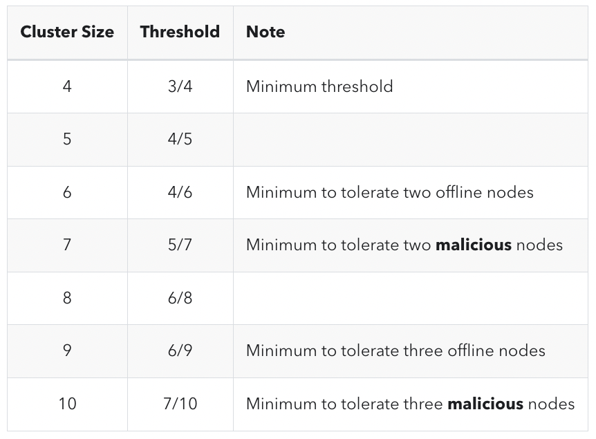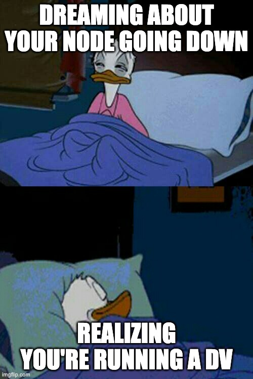 The use of DVT represents the first time that node operators can safely run active-active setups for Ethereum validation, without raising their risk of slashing. This is because each node only runs one key shard of the validator private key, which never exists entirely in one location at any point in time. Together, signatures from two-thirds of the private key shards can complete their duties, similar to a multi-sig. Importantly, not all private keys are needed to construct a valid signature for the associated public key. Downtime of a single node can be dealt with by simply moving the key shard to a new node, or a slow investigation to solve the issue with the original node. (the entire cluster and validators remain online as long as the majority of nodes are online.) If it happens that the same key shard is run on two nodes at once, there is no slashing risk.