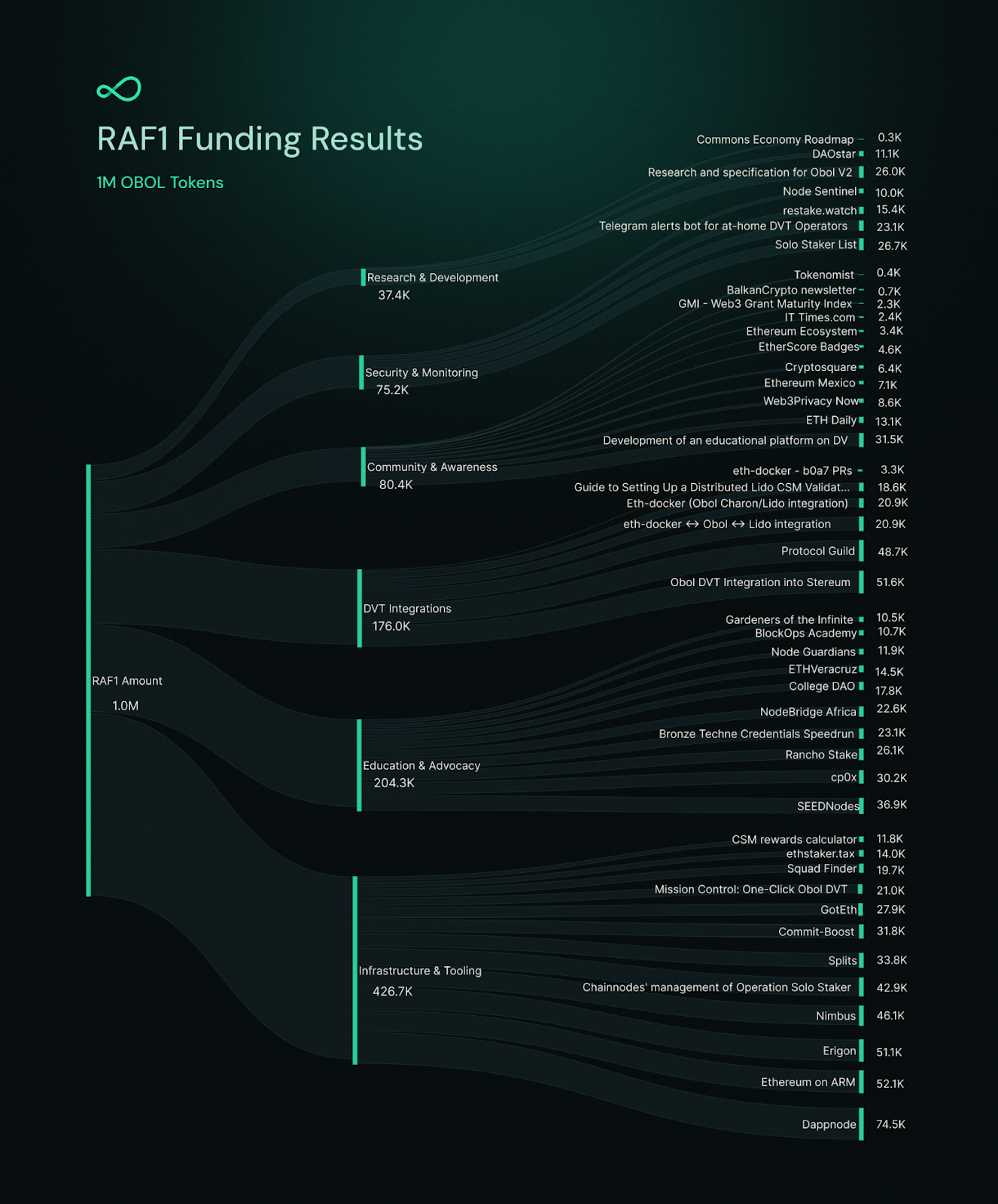 This successful completion of RAF1 marks just the beginning of our commitment to supporting public goods in the Obol ecosystem. The insights gained from this round will help us refine our approach for future funding rounds, ensuring we continue to effectively support projects that advance our mission of scaling decentralized infrastructure networks.